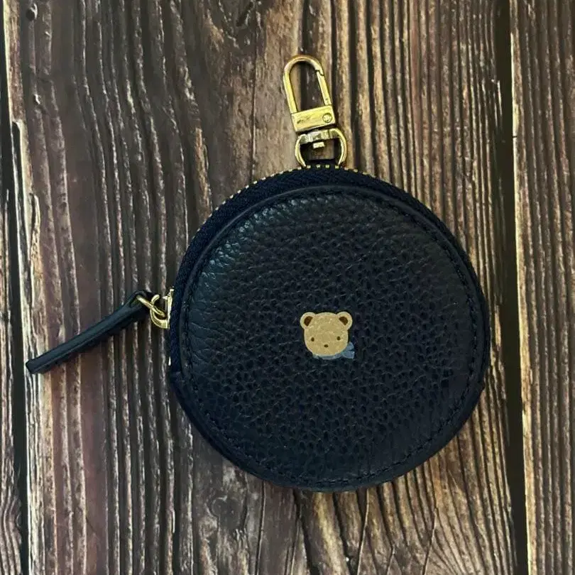familiar 네이비 가죽 코인 케이스 곰 모티브