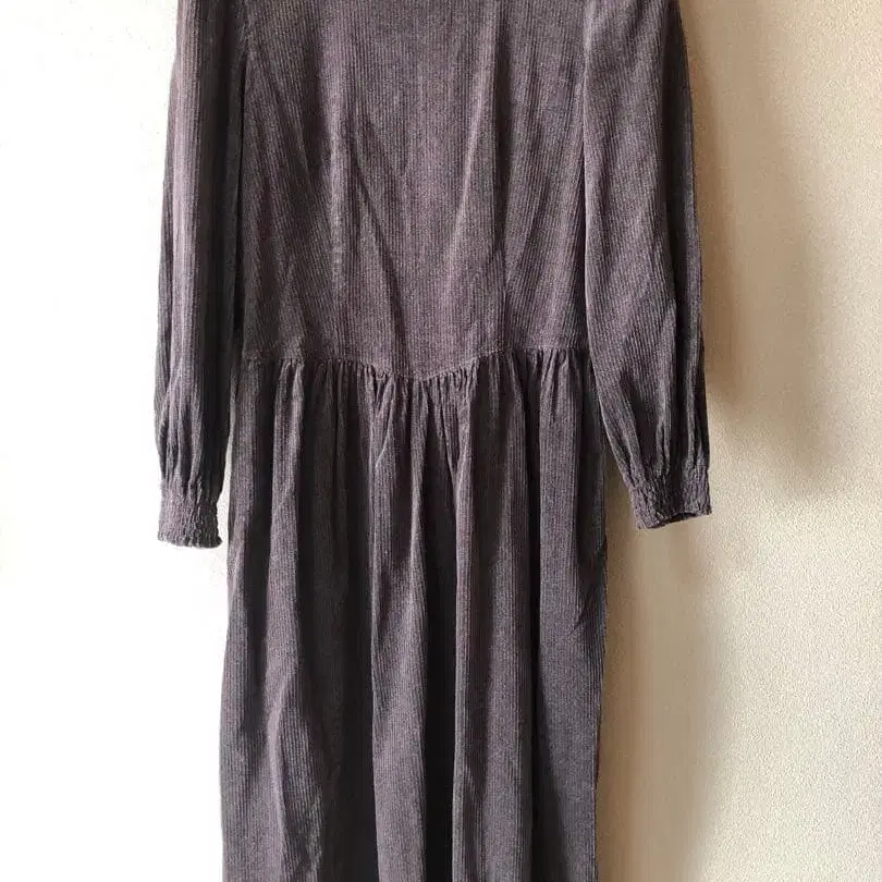 • 그레이 롱 원피스 긴팔 티셔츠 플레어 허리밴딩 스트레치