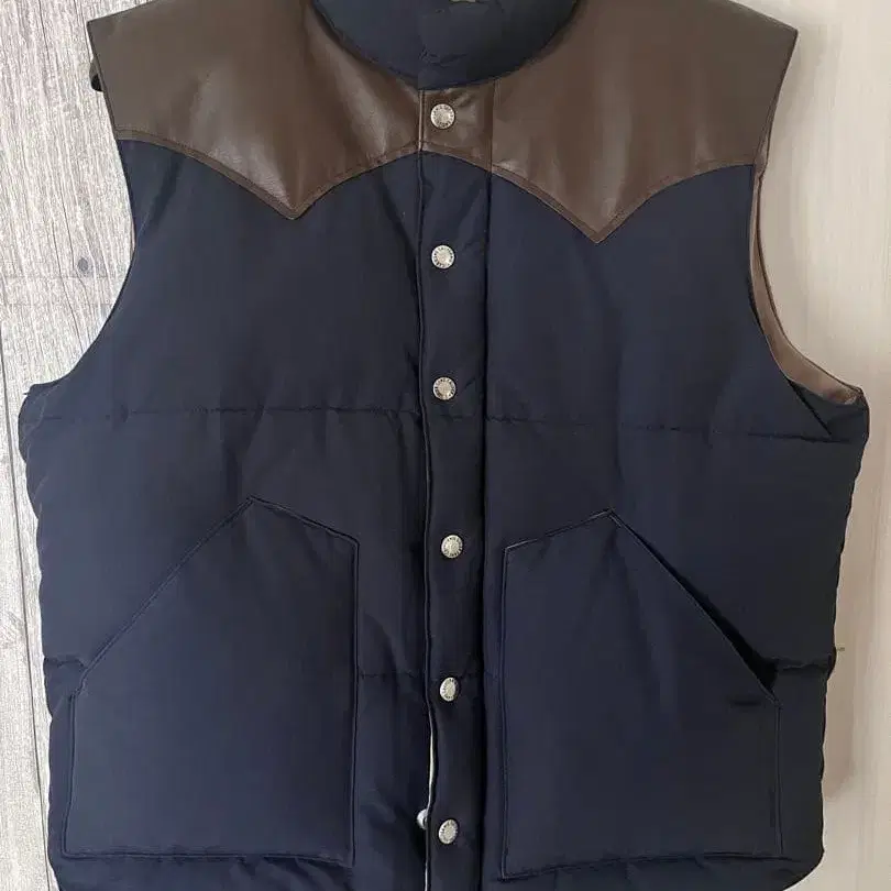 Sugar Cane 다운 베스트 XL 네이비/브라운 가죽 요크