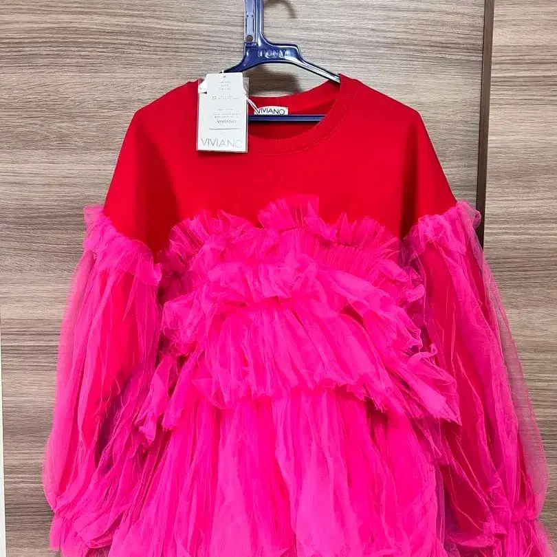 VIVIANO 핑크 레드 프릴 트레이닝복