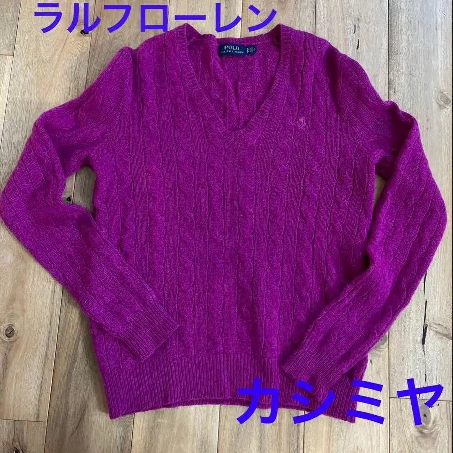 랄프 로렌 캐시미어 케이블 니트 스웨터 퍼플 캐시미어