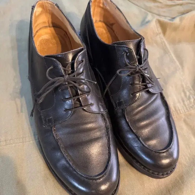 파라부트의 스테디셀러 샹보드 블랙 모델입니다. 일반 모델이 아닌, 잡지 Begin에도 소개된 매우 레어한 굿이어 모델입니다. 일반 모델보다 약간 더 드레스 느낌이며 그린 택도 일부러 붙어 있지 않습니다. 또한 밑창은 라텍스가 아닌 액팀 밑창이라고도 불리는 견고한 타입입니다. 웨스턴 골프와도 비슷한 느낌이라고 할 수 있습니다. 어퍼 등 전반적으로 깨끗한 상태라고 생각하지만, 입구 부분에 일부 마찰로 인해 벗겨진 부분이 있습니다만, 아직 그대로 신을 수 있는 수준입니다. 참고로 힐 부분은 교체할 시기가 다가오고 있습니다. 힐은 전용이 아니어도 문제없습니다. 물론 정품이므로, 공식 매장에서 올 솔도 최종적으로 가능합니다. 퇴직하여 신을 기회가 없어 미니멀리스트로서 내놓았습니다. 잘 부탁드립니다. 시세를 잘 몰라 임의로 가격을 정했지만, 가격 인하도 가능합니다.
