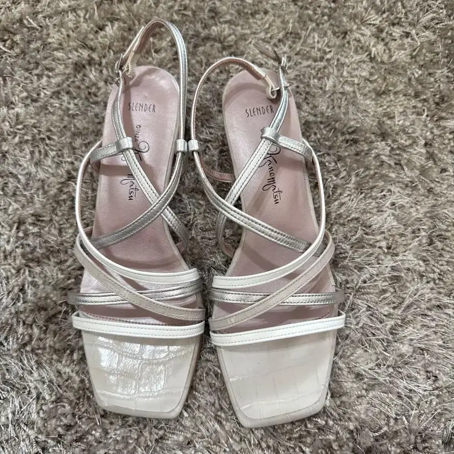 카네마츠 베이지 크로커다일풍 스트랩 샌들