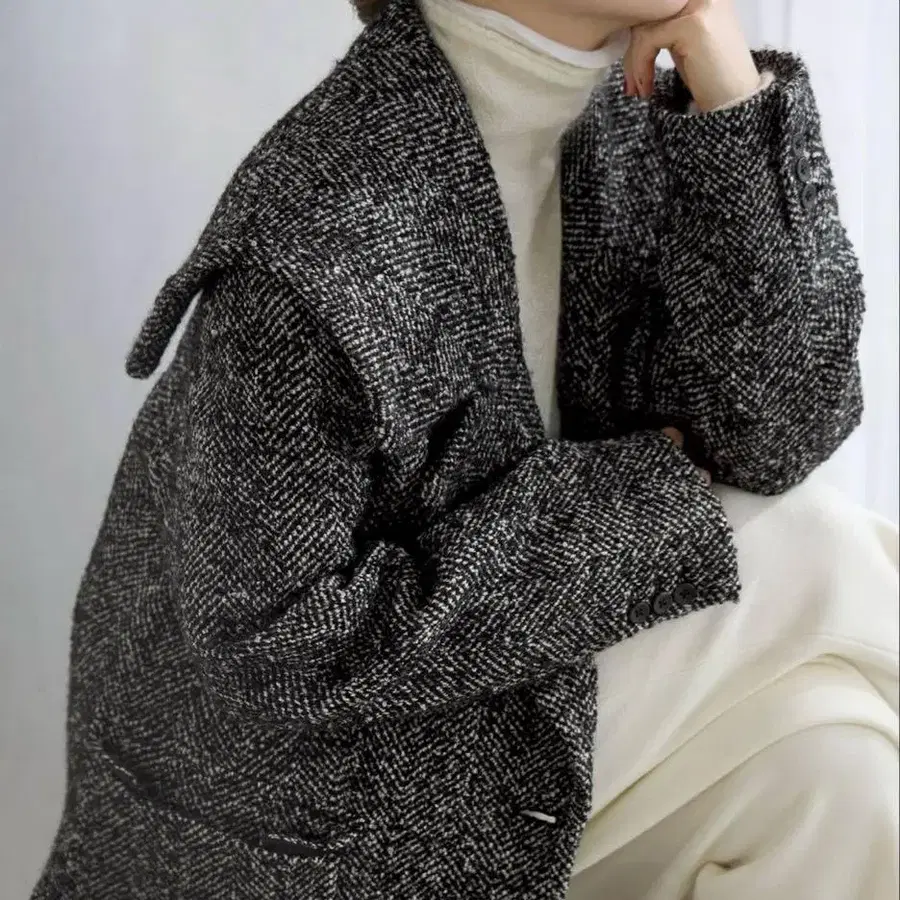 해링본 트위드 빅 칼라 코트 iena 38 새상품급