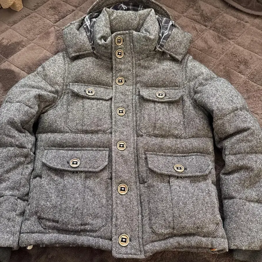 그레이 후드 부착 다운 자켓