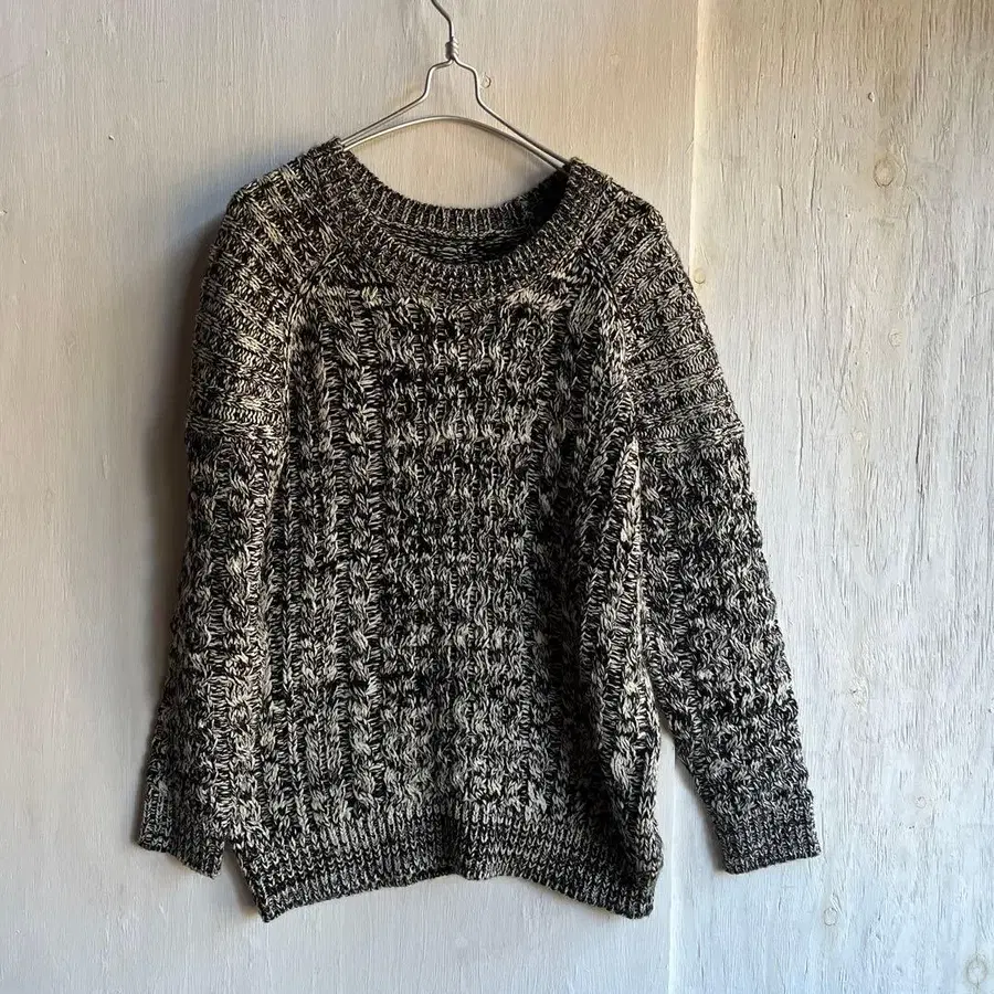 중간 두께 니트 스웨터 블랙과 화이트 혼합 짜임