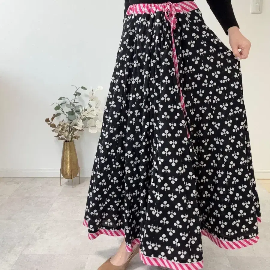 1점 한정 블록 프린트 스커트 블랙 핑크 수입 꽃무늬 스커트