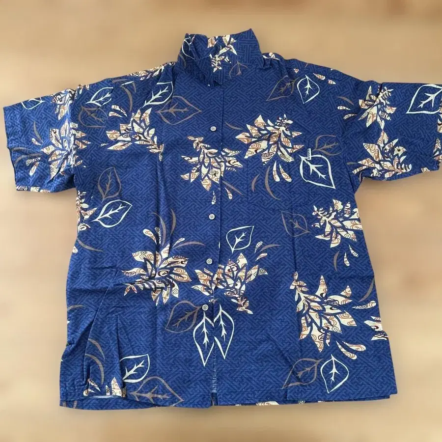Mango 오키나와제 네이비 잎 패턴 하와이안 셔츠 면 100%