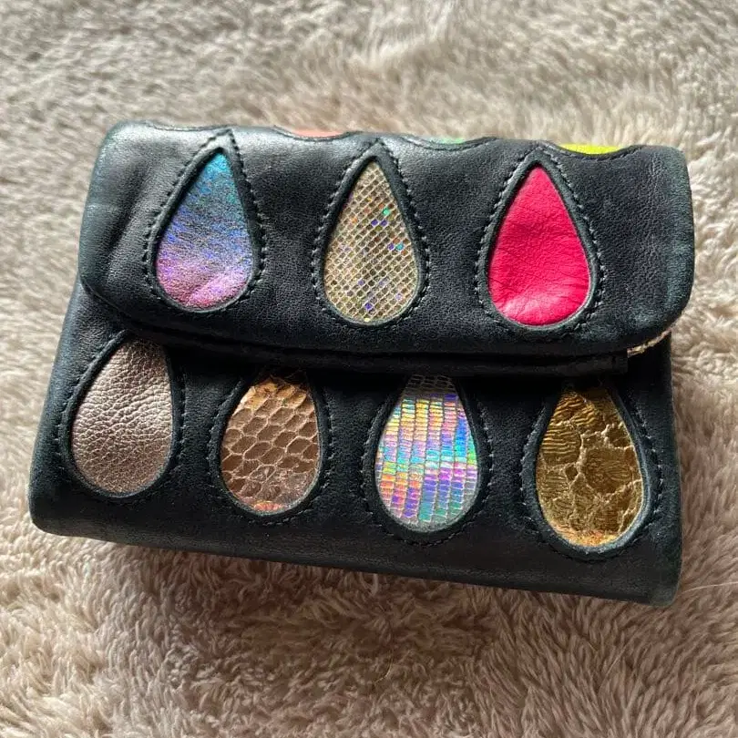 츠모리치사토 3단 폴더형 지갑 새상품급 물방울 패턴 드롭 패턴