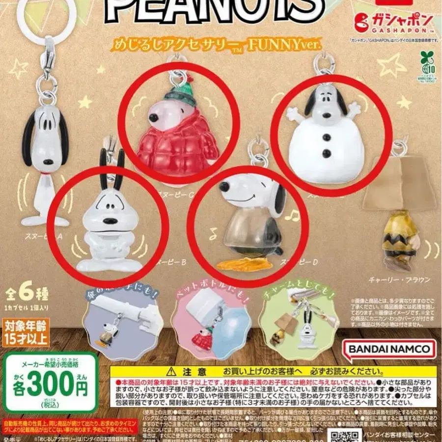[ 4개 세트 ] PEANUTS 메지루시 액세서리 FUNNY 버전
