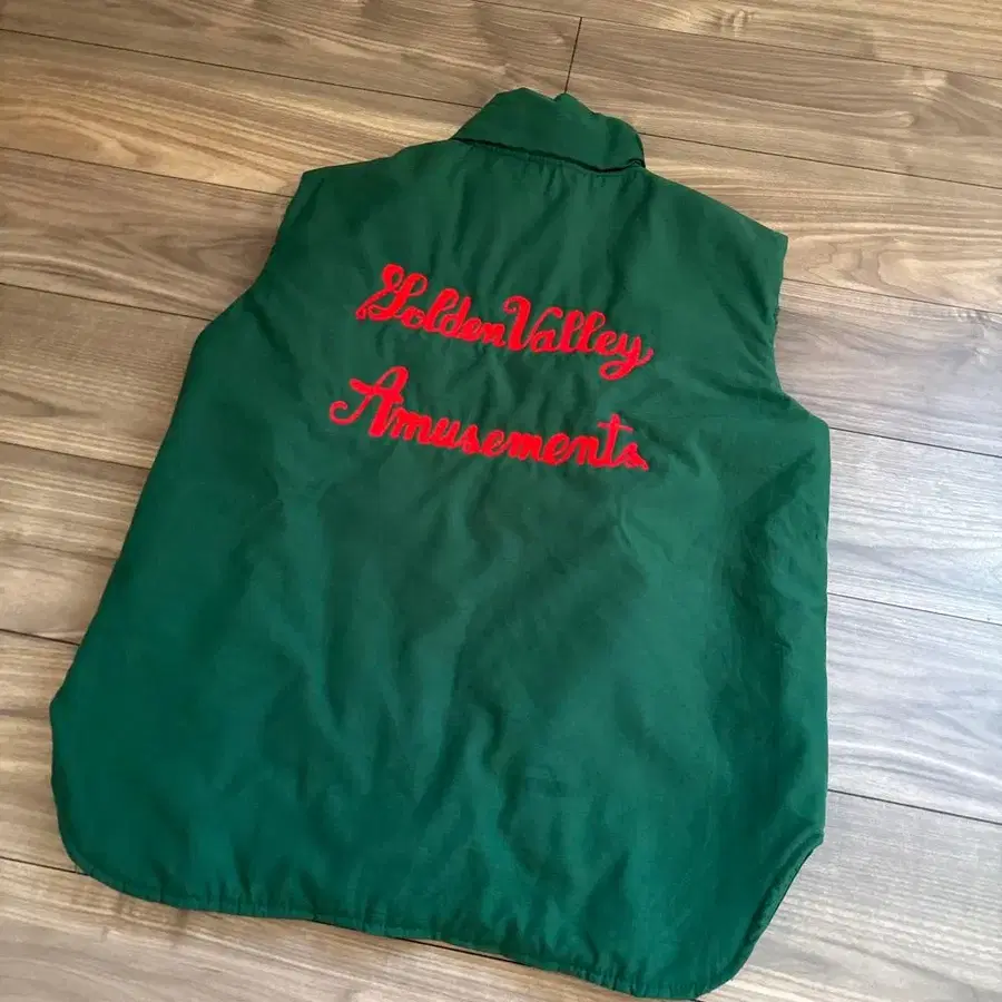 자수 로고 다운 베스트 스탠드 카라 그린 레드
