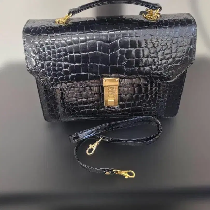 자동 번역되었어요. 원문보기악어 무늬 합성 피혁 비즈니스 백, 탈부착 가능한 숄더 스트랩 포함.