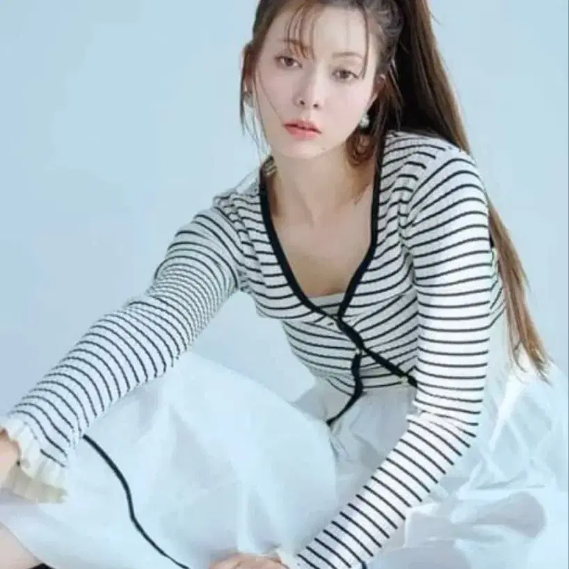 릴리 브라운 프릴 슬리브 가디건 보더