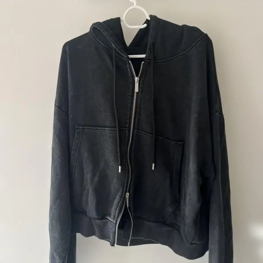 헤비 웨이트 빈티지 숏 풀 집업 후드티 L 사이즈 블랙