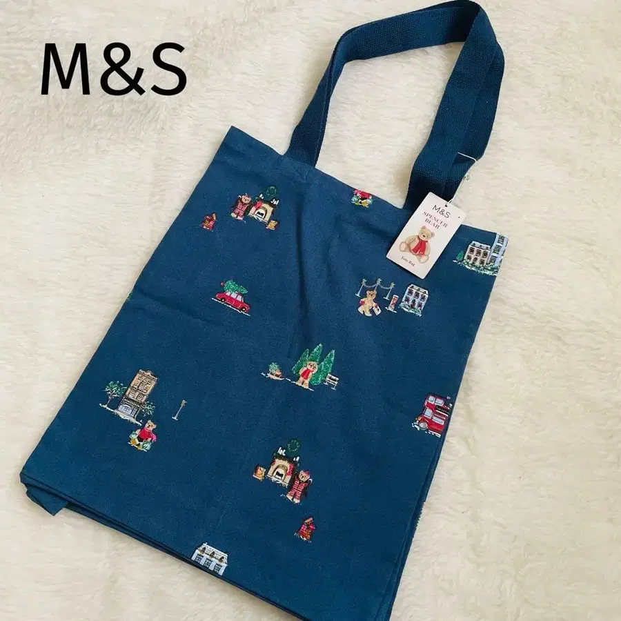 영국 마크스앤스펜서 토트백 크리스마스 네이비 베어 런던