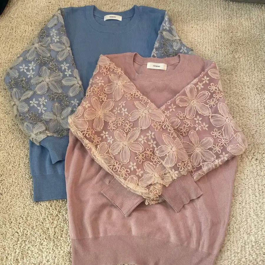 꽃무늬 레이스 소매 긴팔 니트 2세트