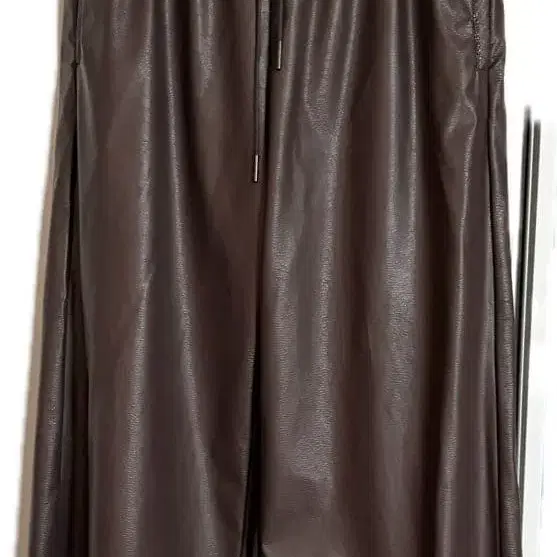 브라운 합성 피혁 와이드 팬츠