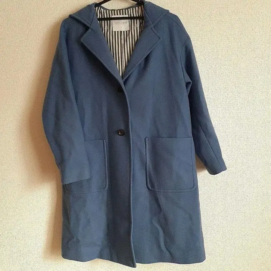 매킨토시 철학 후드 부착 코트 하늘색 그레이빛 블루