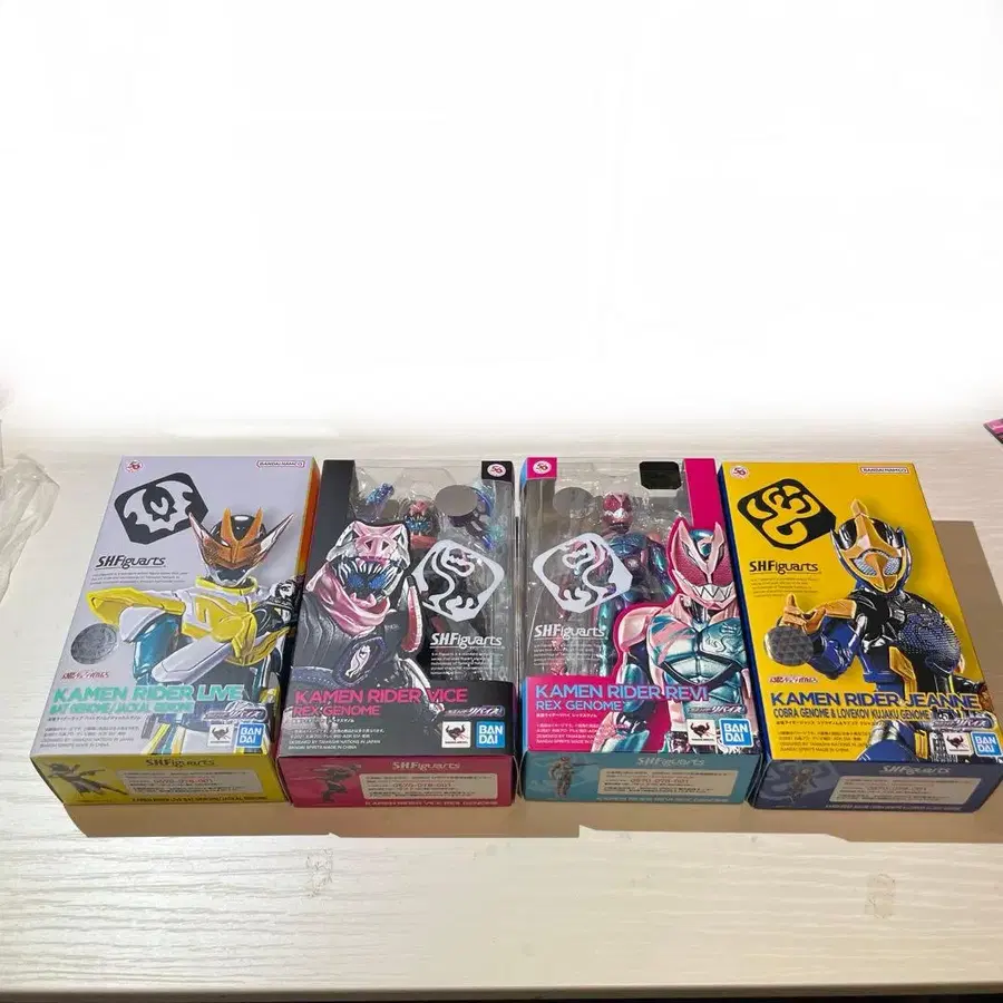 가면라이더 리바이스에 등장하는, 가면라이더 리바이 가면라이더 바이스 가면라이더 라이브 가면라이더 잔느 의 S.H 피규아트 4체 세트입니다. 컬렉션 정리를 위해 판매합니다. 모두 개봉품입니다. 해당 상품은 가격 협의 가능합니다. 콘텐츠명 - 가면라이더 시리즈