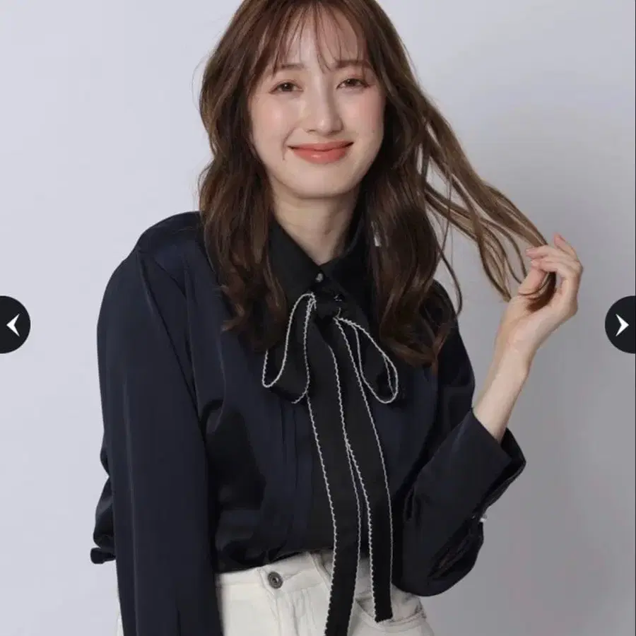 배색 디자인이 눈길을 끄는 보타이 블라우스입니다.