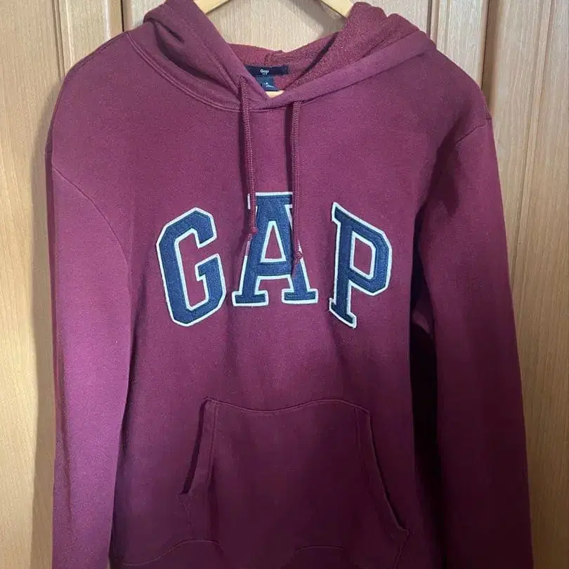 GAP 풀오버 후드티 빅 자수 로고 속기모 버건디