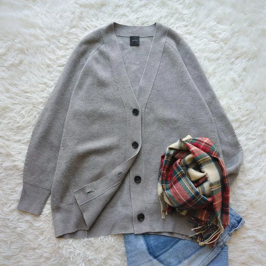 Spick&Span 편직 V넥 가디건 루즈핏 손세탁 가능 F 그레이