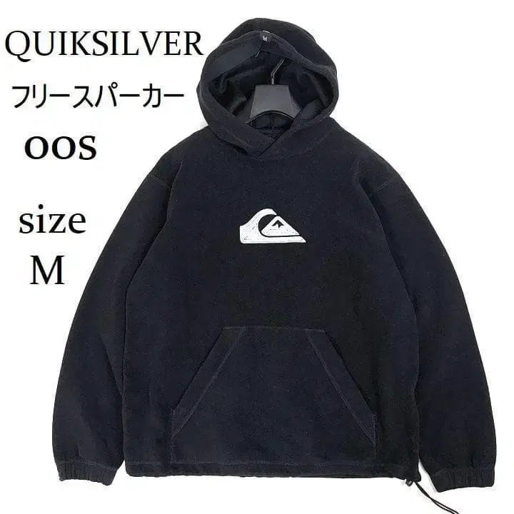 퀵실버 플리스 후드티 M 블랙 자수 로고 밑단 드로우 코드