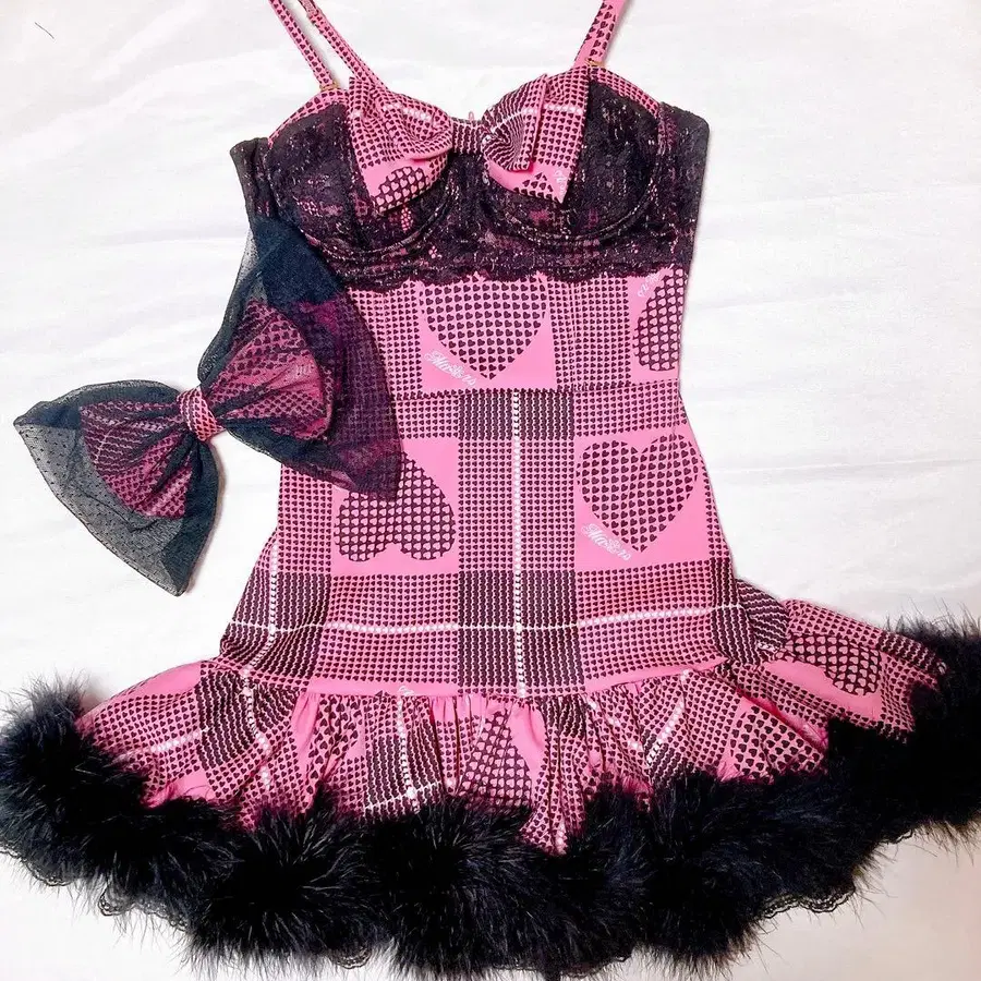 • Dear my Love 유메텐보 지뢰계 미니 원피스 블랙 레이스 리본