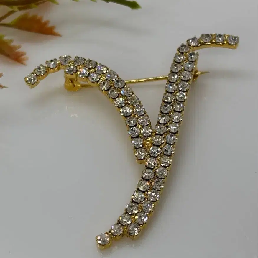 Y자형 골드톤 브로치 크리스탈 장식 (1133)
