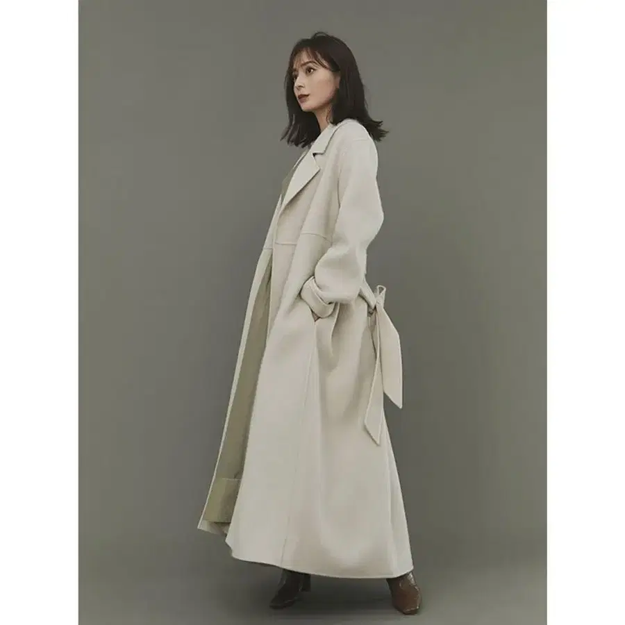• SOJU 울 리버 로브 코트 맥시 길이 더블 페이스 벨트 S