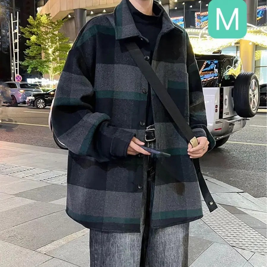 남성용 오버 셔츠 자켓 체크 무늬 아우터 점퍼