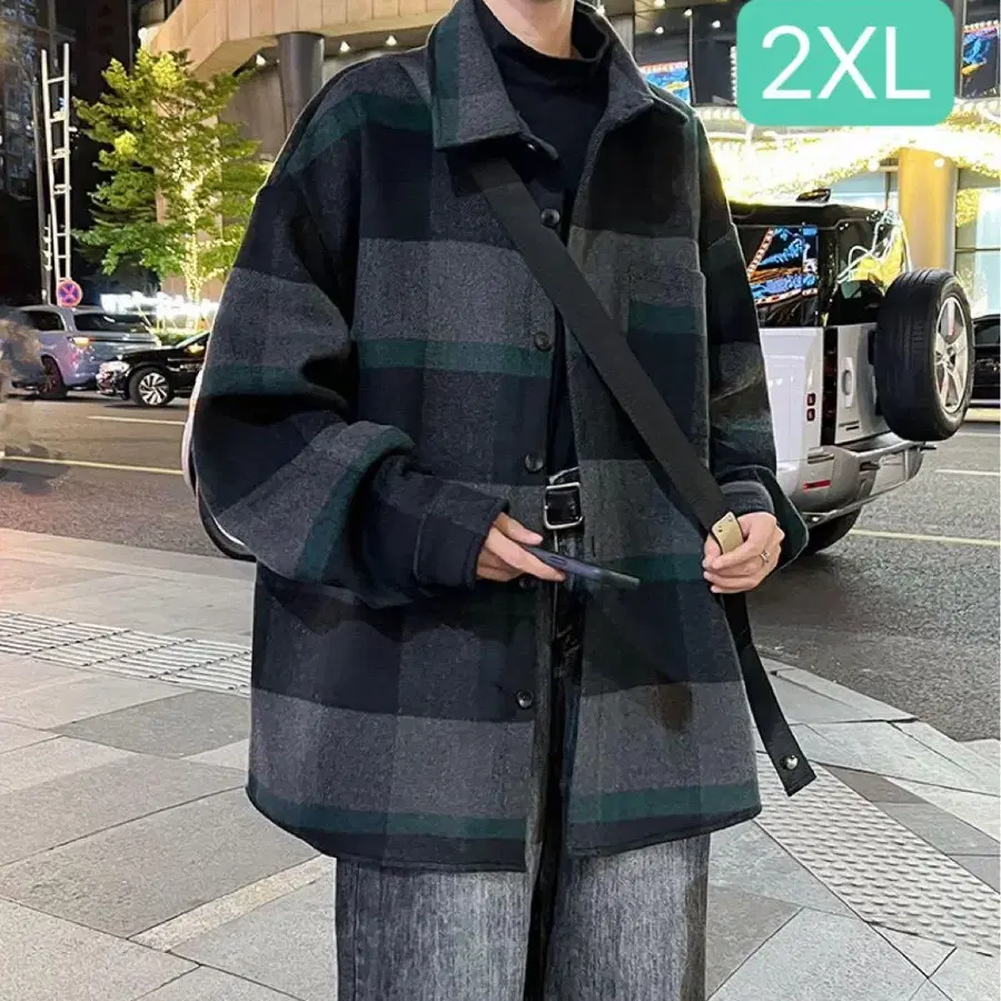 남성용 오버 셔츠 자켓 체크 무늬 아우터 점퍼