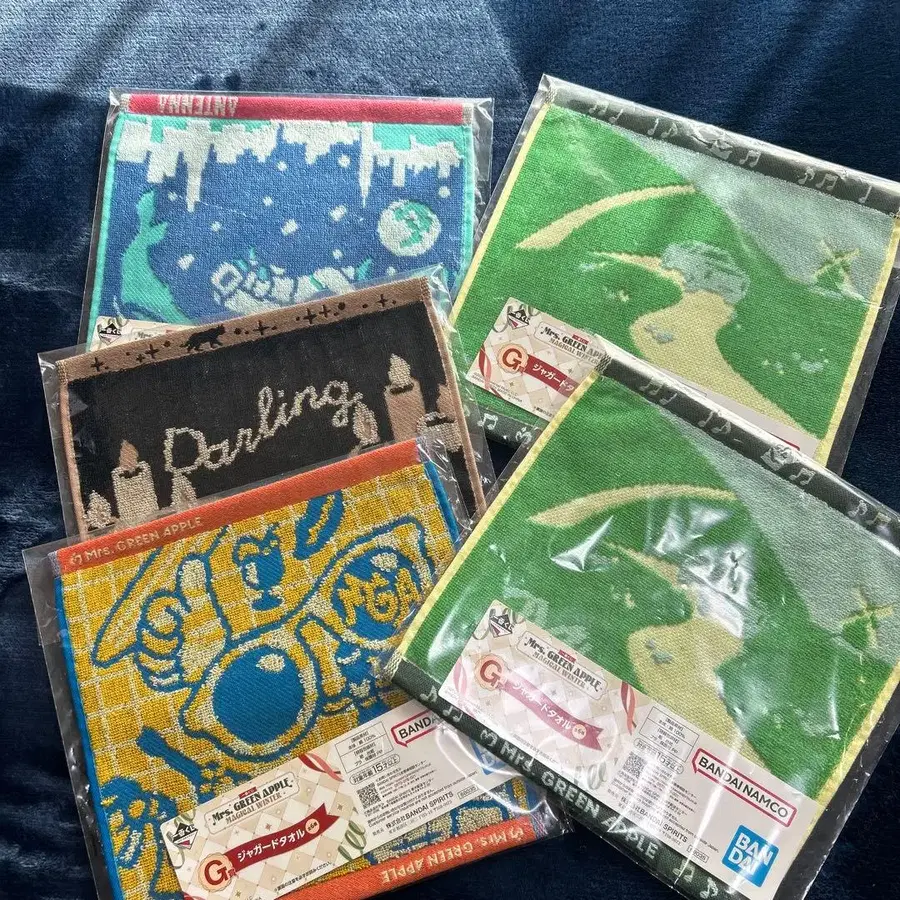 미세스 그린 애플. 1번 쿠지 타월 5장 세트. - 디자인: 다양한 컬러풀한 디자인의 타월 - 브랜드: 반다이 - 수량: 5장 세트 - 소재: 불명, 타월 소재 - 테마: 음악 관련 아트 워크 방문해 주셔서 감사합니다.