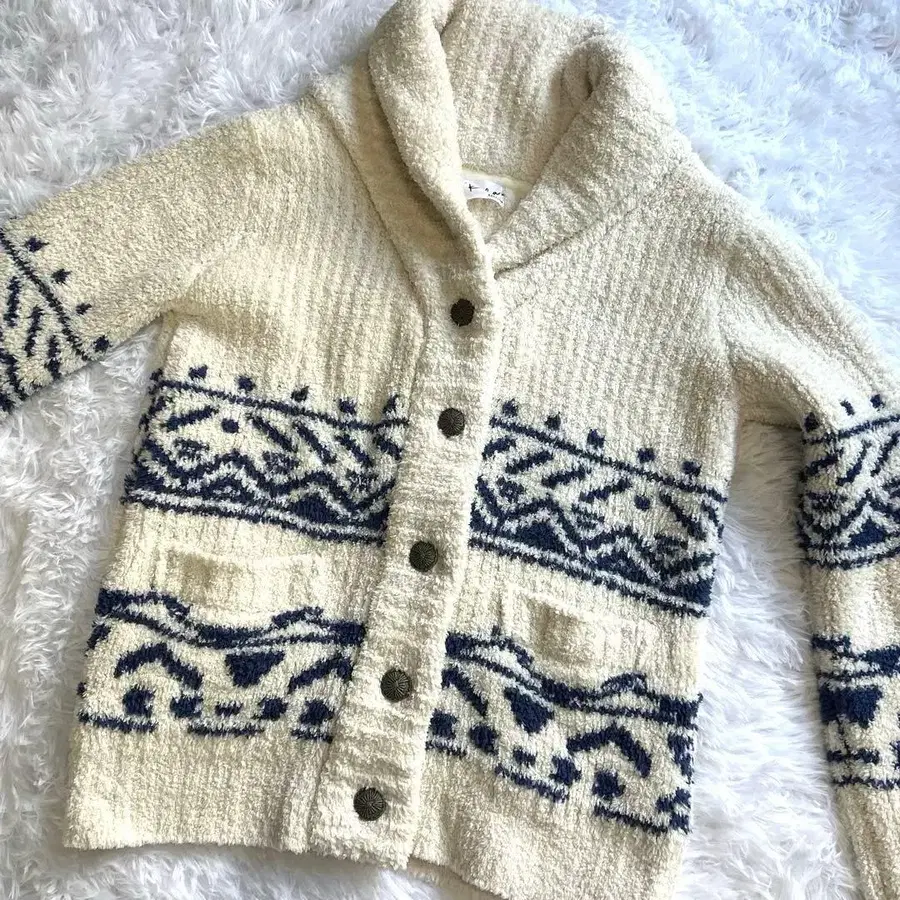 BAYFLOW 보아 가디건 F 아이보리 노르딕 무늬 두꺼운 원단