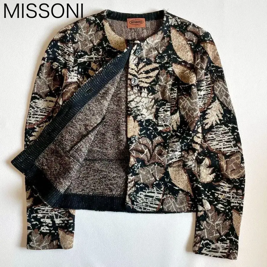 [ 미쏘니 ] 노카라 자켓 가디건 올 패턴 블랙 베이지 이탈리아제
