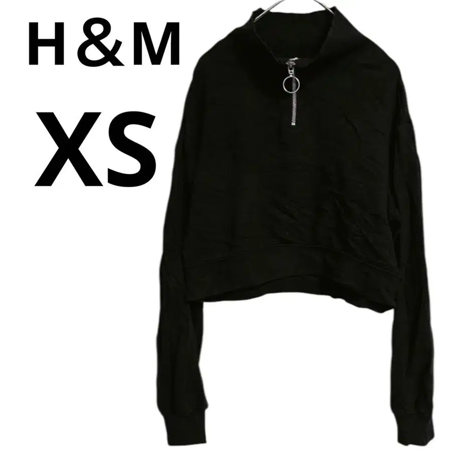 H&M [XS] 블랙 크롭 맨투맨 트레이닝복 짧은 기장