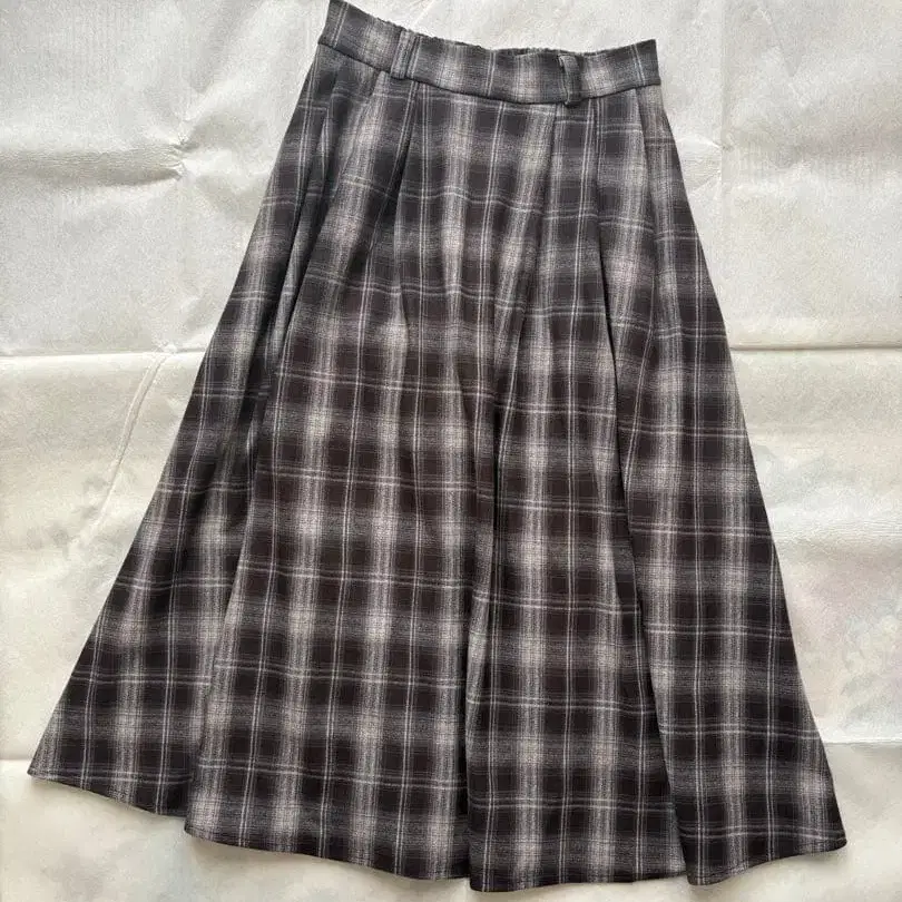 새상품급 엑시즈팜 롱 스커트 그레이 베이지 브라운 체크