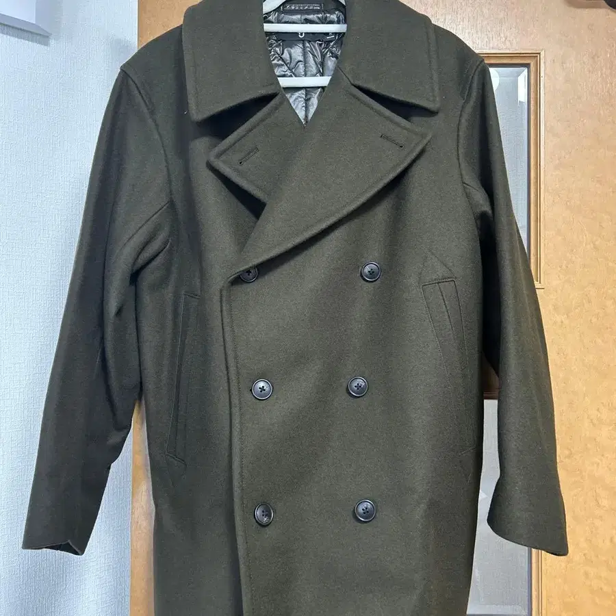 울 혼방 더블 브레스트 피 코트 M 사이즈 올리브