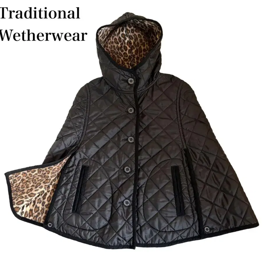 컨디션 최상 트래디셔널 웨더웨어 퀼팅 케이프 레오파드 무늬