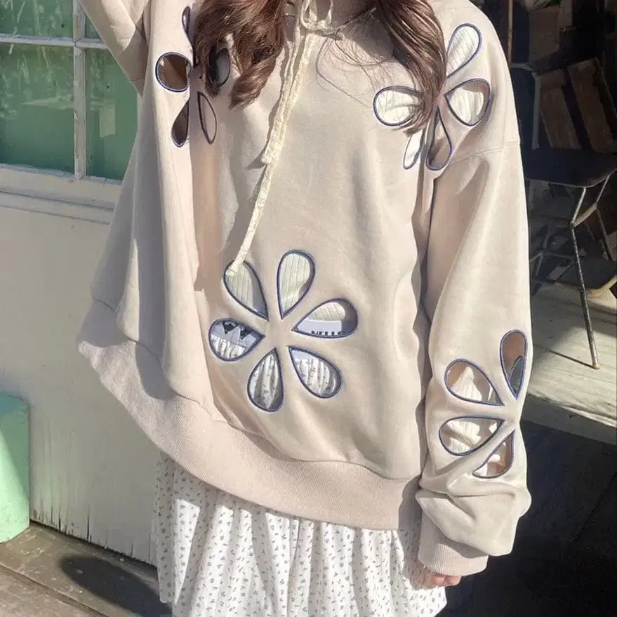 플라워 모티브 긴팔 맨투맨 라이트 그레이