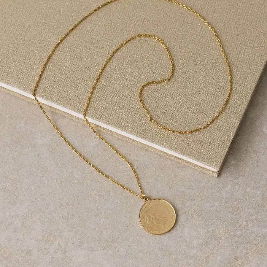 새상품 골드 [ ear PAPILLONNER ] 앤티크풍 코인 목걸이
