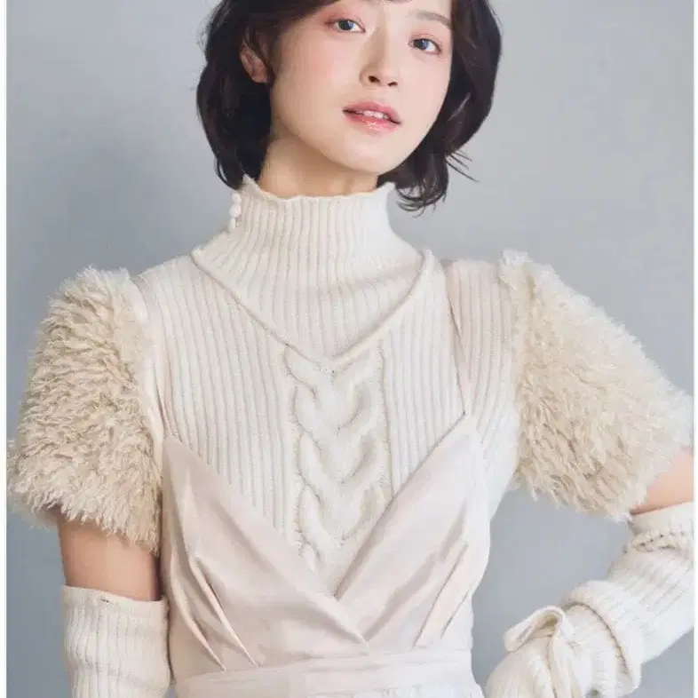 한 번 시착했으나 저에게 어울리지 않아 판매합니다. POMIII PARTAGE의 아이코닉 아이템. 부드러운 질감의 리브 니트에, 푹신한 퍼를 소매에 도킹한 디자인 니트. 바디 부분은 깔끔한 실루엣이지만, 입체적인 퍼가 어깨 주위에 볼륨감을 더해, 한 장만으로도 화려함과 은은한 개성을 돋보이게 해줍니다. 소매 부분은 탈부착 가능. 버튼으로 쉽게 입고 벗을 수 있는 사양으로, 기온이나 기분에 맞춰 [ 긴팔 ] [ 반팔 ] [ 암워머 ] 의 3way로 착용 가능합니다. [ 오늘의 기분에 맞춰 착용법을 바꾼다 ] 그런 POMIII PARTAGE다운 드레스업 니트. 모델 신장: 170cm <사이즈 가이드> F: 상의 기장 54cm / 가슴둘레 80cm / 소매 길이 66cm ※ 니트 소재 특유의 신축성 및 측정 위치에 따라 몇 cm의 개체 차이가 발생할 수 있습니다. ■ 상품 관련 촬영 시 조명이나 환경에 따라 실제 상품의 색감이 약간 다를 수 있습니다. 또한, 샘플을 사용하여 촬영했기 때문에 실제 상품과는 사양, 가공, 사이즈 등이 일부 다를 수 있습니다. 미리 양해 부탁드립니다. 생산 시기 (로트)의 차이에 따라 같은 컬러라도 약간의 색감, 질감이 다를 수 있습니다. 소재나 염색의 특성에 의한 것으로, 불량이 아니므로 미리 양해 부탁드립니다.