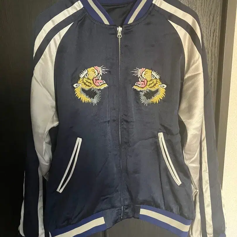 호랑이 자수 네이비 블루 스카잔