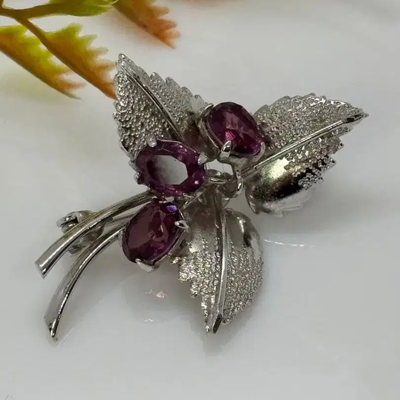 천연 자수정/잎 모양의 보라색 스톤 브로치 (1140)