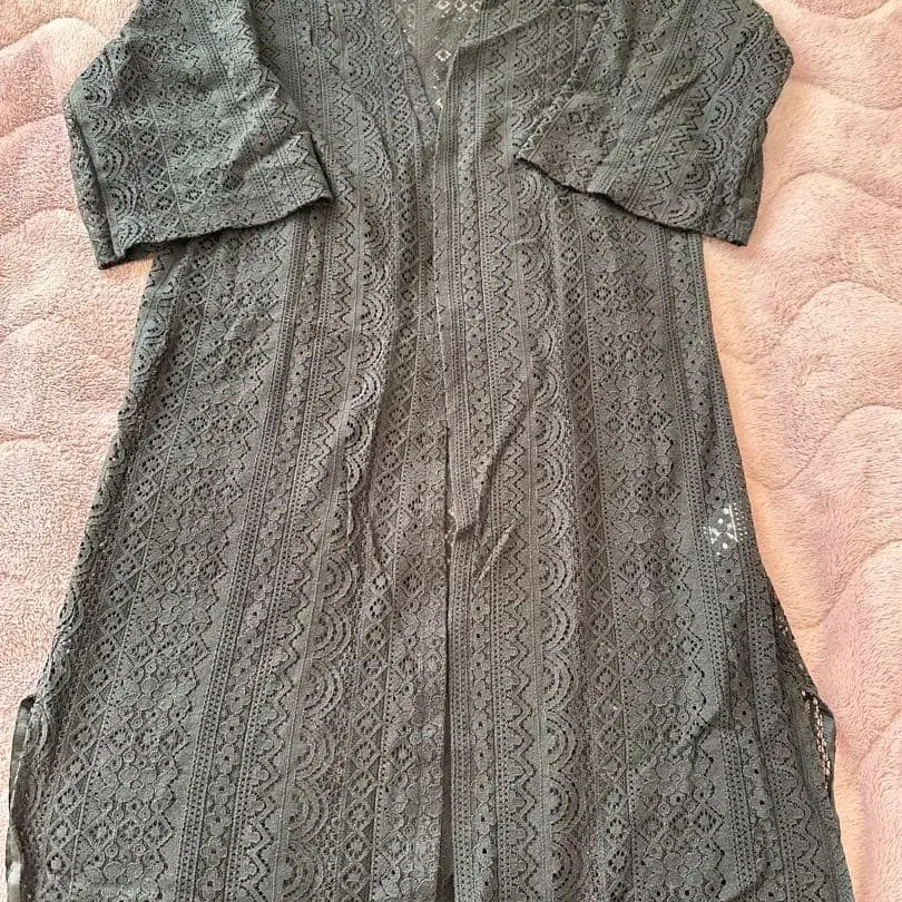 레이스 무늬 칠부 소매 가디건 S 블랙