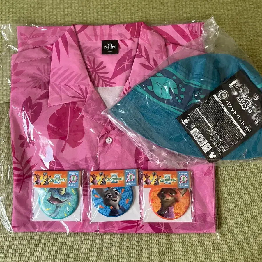 주토피아2 Happy 복권 알로하 셔츠 버킷 햇 캔 거울 세트