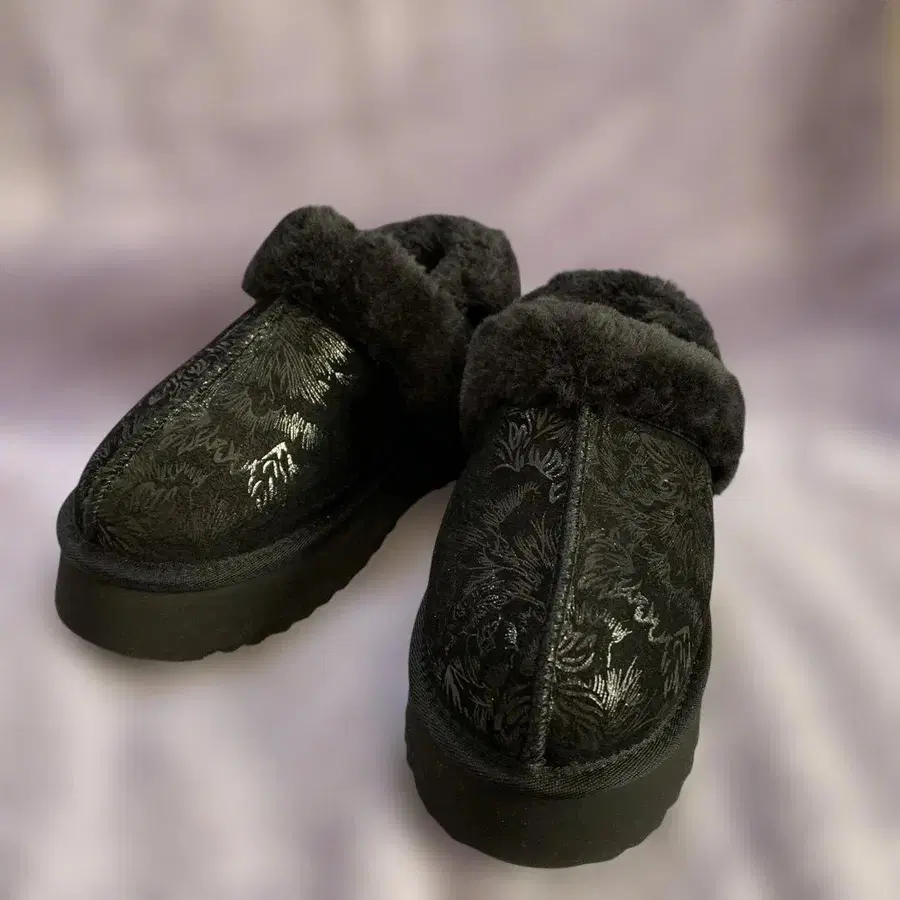 퍼 달린 꽃무늬 블랙 클로그 샌들