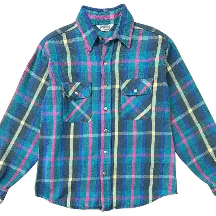 빈티지 70s USA製 FIVE BROTHER 파이브 브라더 헤비 플란넬 셔츠 블루 계열 L