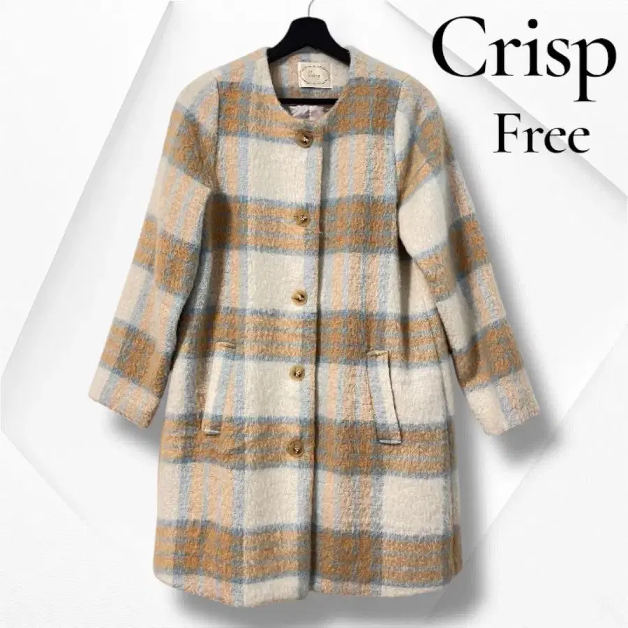 새상품급 Crisp 체크 롱 코트 크리스프 둥근넥 버튼 베이지