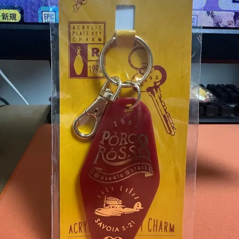 [미사용품] 지브리 붉은 돼지 플레이트 키참